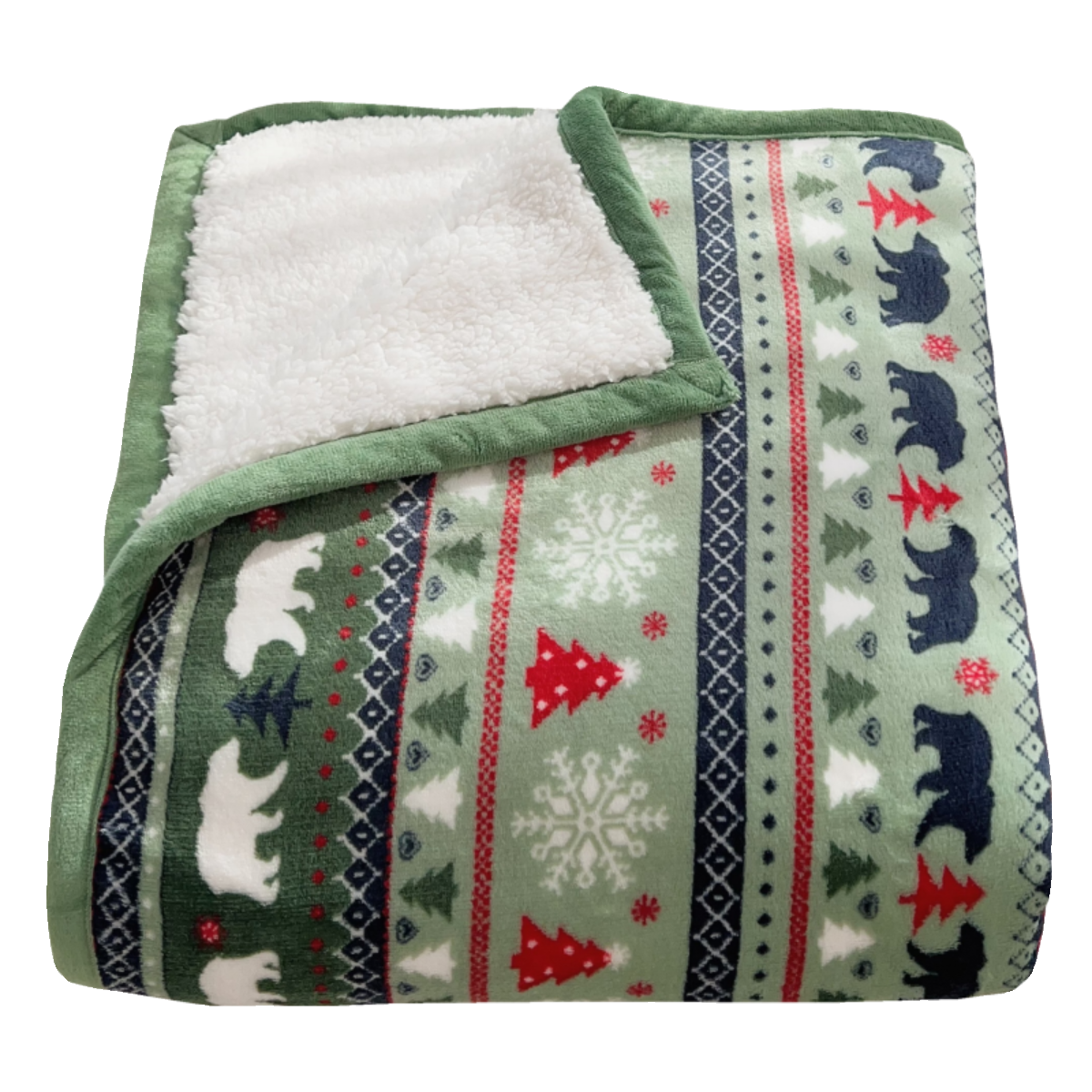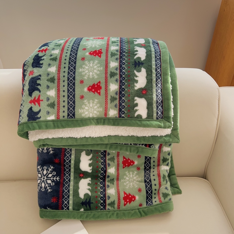 圣诞雪花熊秋冬加厚沙发毯法兰绒