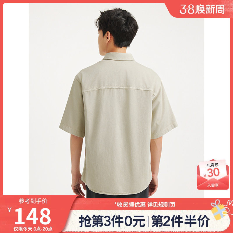 热风2025年夏季新款男士牛仔短衬