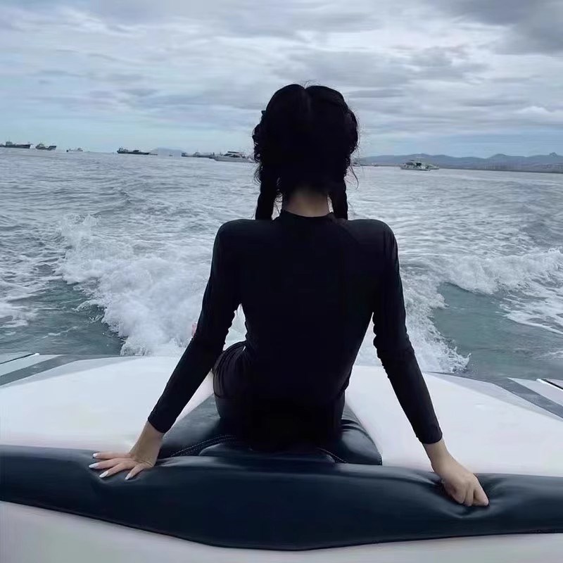 泳衣女2025新款夏高级感女款保守长袖平角裤连体网红风显瘦游泳衣