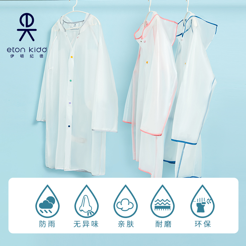 伊顿纪德小学生包边透明TPU雨衣 儿童雨披全身22R901