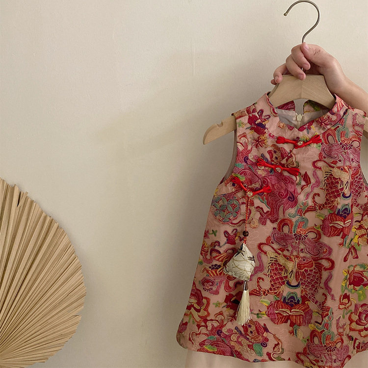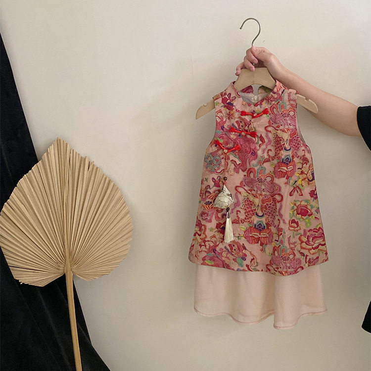 女童连衣裙2026夏季中国风旗袍中大童亲子装中式马甲复古唐装汉服