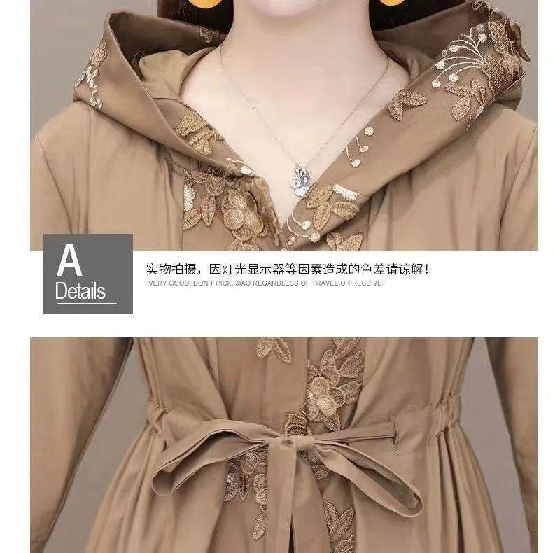 妈妈春装风衣中长款2023春装新款中年女刺绣大码过膝显瘦洋气外套