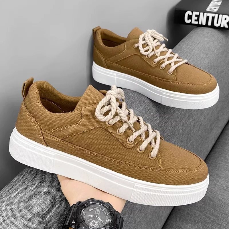 夏季2025新款透气轻便帆布男鞋潮流百搭港风休闲鞋子耐磨防滑板鞋