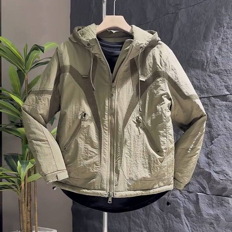 重磅拼接秋冬纯色连帽休闲夹克