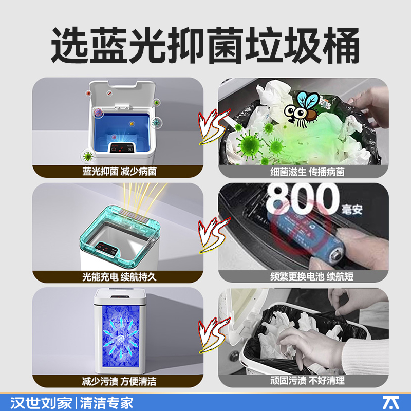 汉世刘家智能垃圾桶带盖感应式家用客厅电动自动厕所卫生间卫生桶