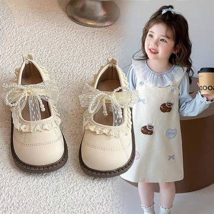 女童鞋子儿童公主豆豆小皮鞋2025春秋新款洋气女孩配裙子单鞋