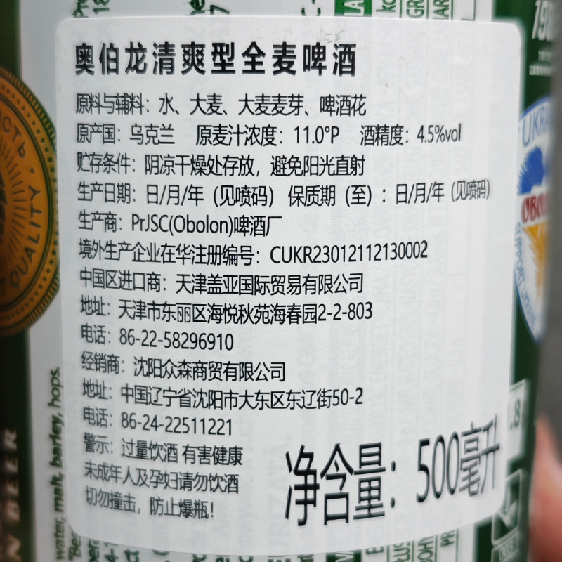 乌克兰原装进口奥伯龙纯麦啤酒拉罐装500ml精酿啤酒整箱