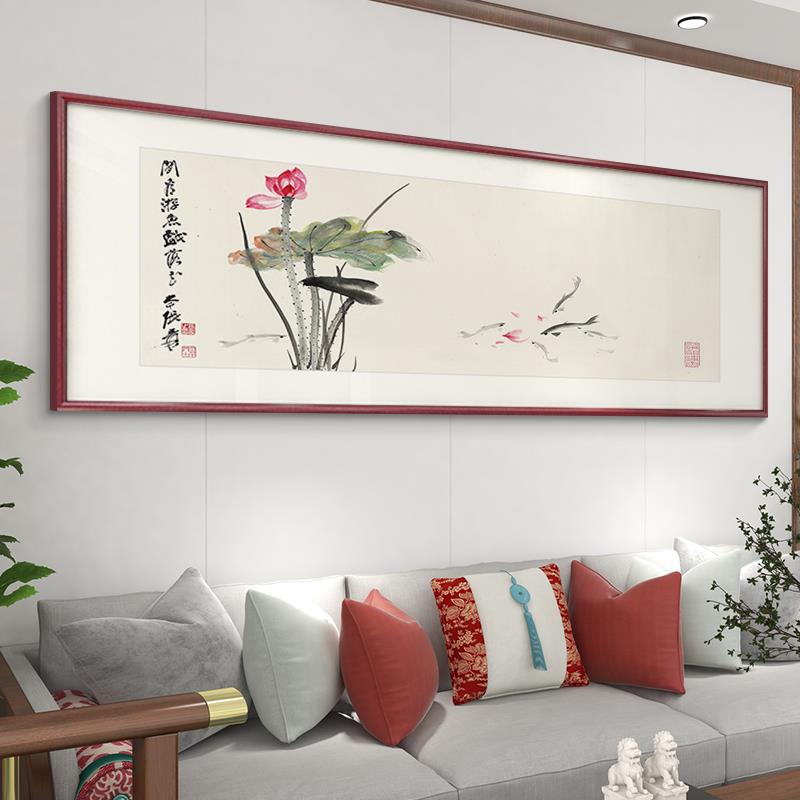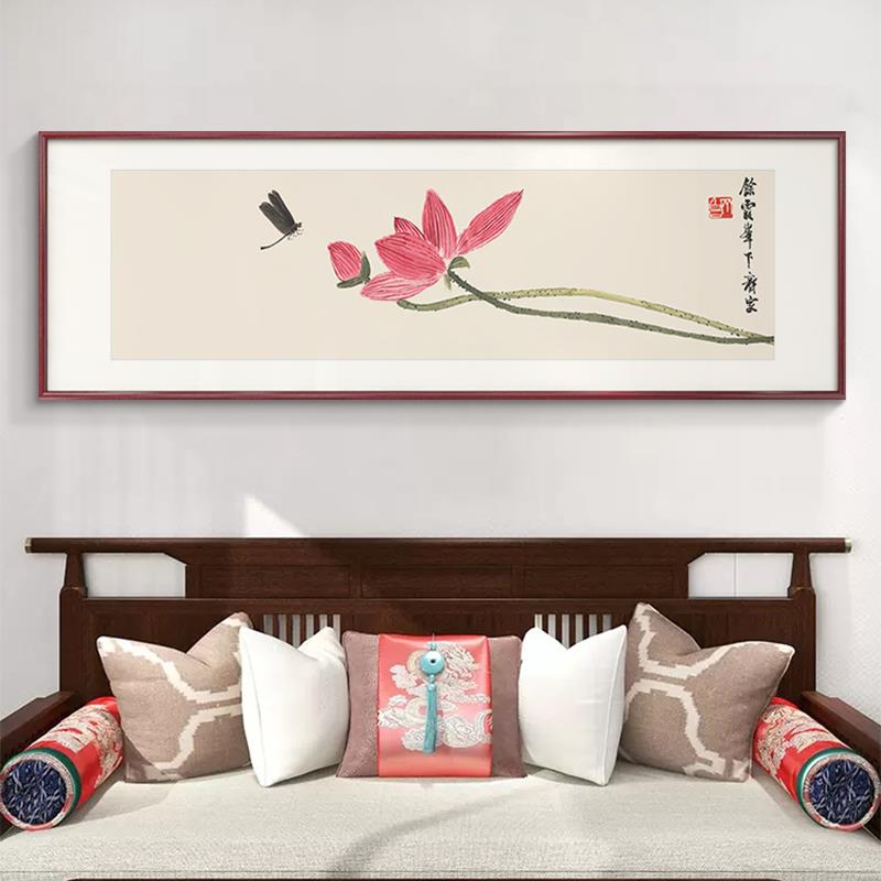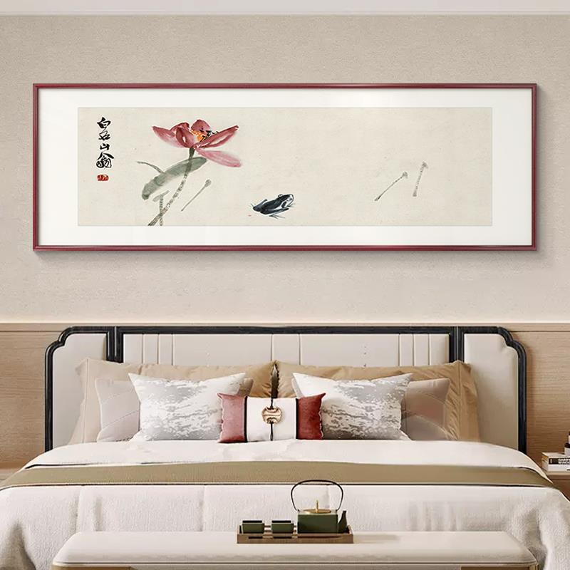 齐白石新中式客厅沙发背景墙挂画 画荷花装饰画 画卧室茶室壁画