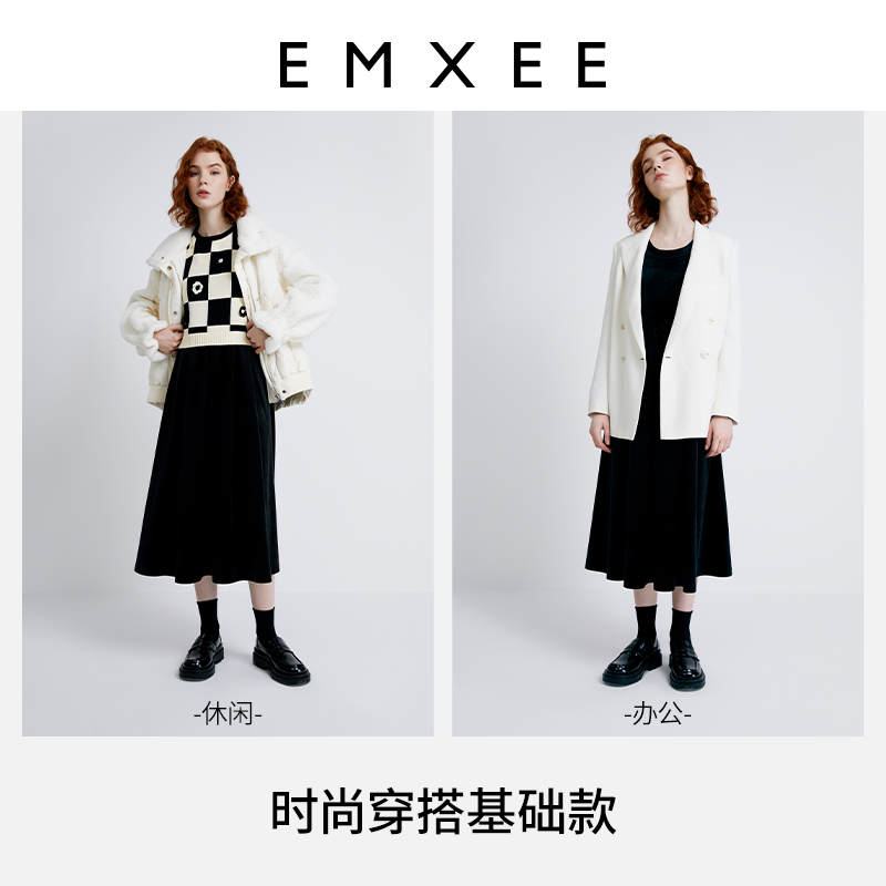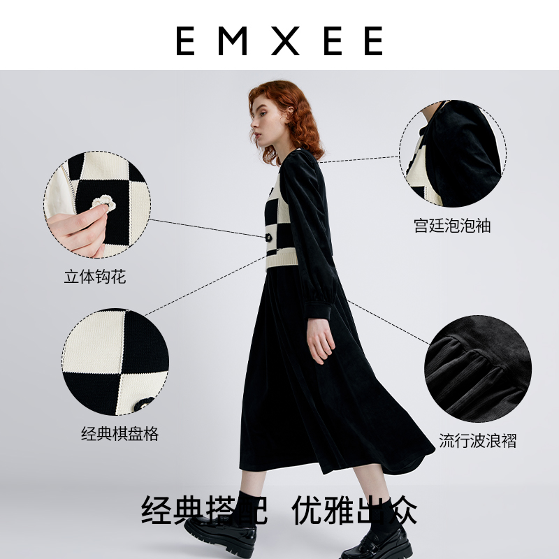 EMXEE嫚熙圆领秋冬长袖连衣裙