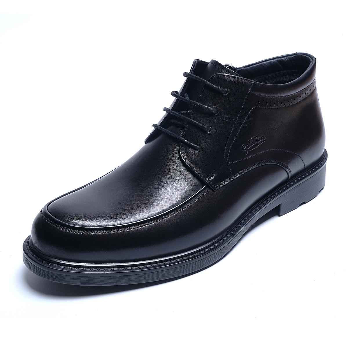 金利来男鞋2024冬季新款加绒系带商务高帮正装皮鞋男棉鞋短靴子