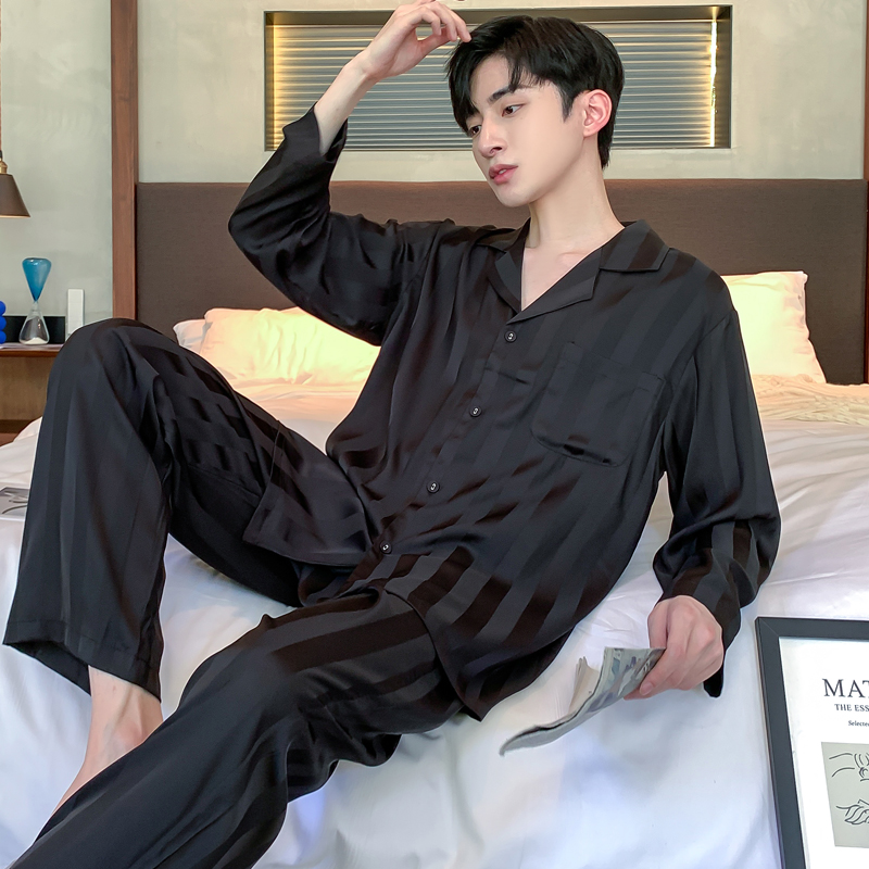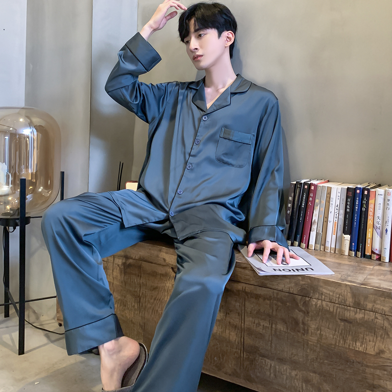 维多利亚高级男士睡衣男款纯棉长袖新款春秋仿真丝绸家居服套装