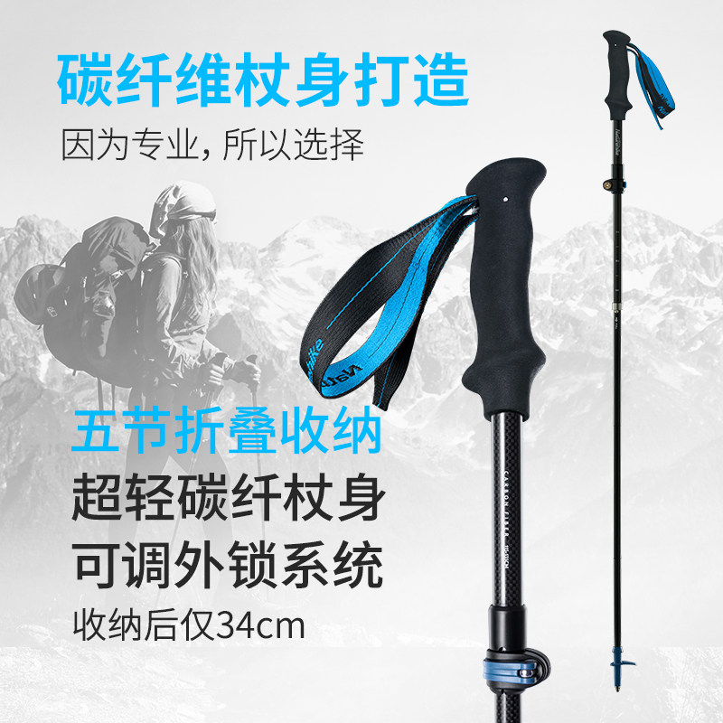 挪客户外登山杖碳素超轻伸缩可折叠五节手杖男女爬山徒步拐杖拐棍