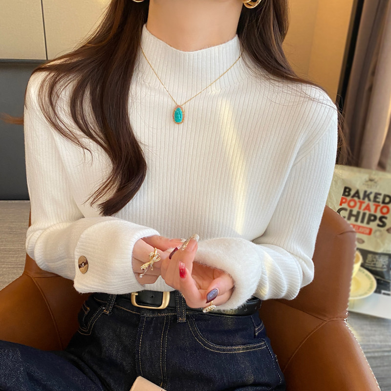 灰色半高领打底衫女内搭加绒加厚2025秋冬新款毛衣高级感针织上衣