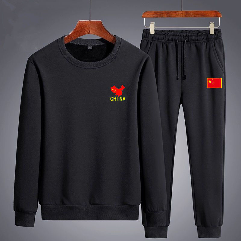 男士春秋新款圆领卫衣套装男韩版休闲运动服青少年学生衣服套装潮