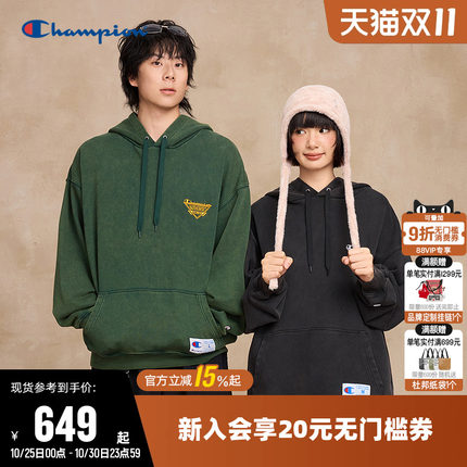 Champion冠军卫衣男2025冬季新款复古水洗做旧风休闲连帽上衣女潮