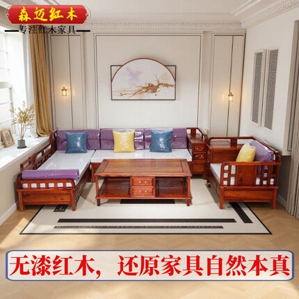 缅甸花梨红木沙发中式木纹沙发榫卯客厅奢华原木古典实木榫卯家具