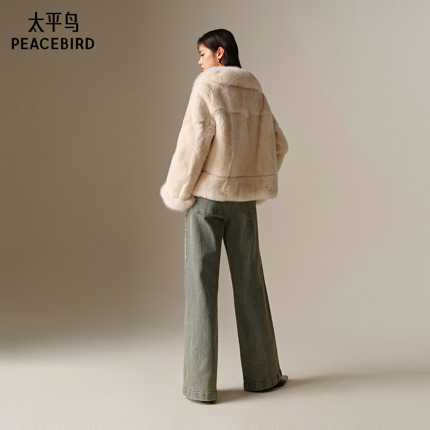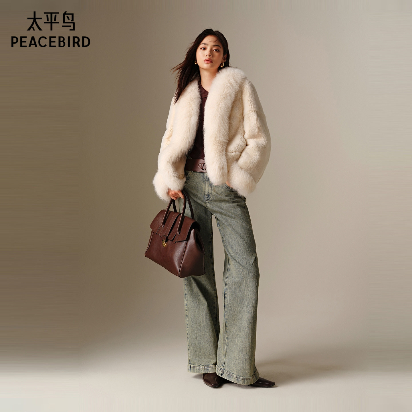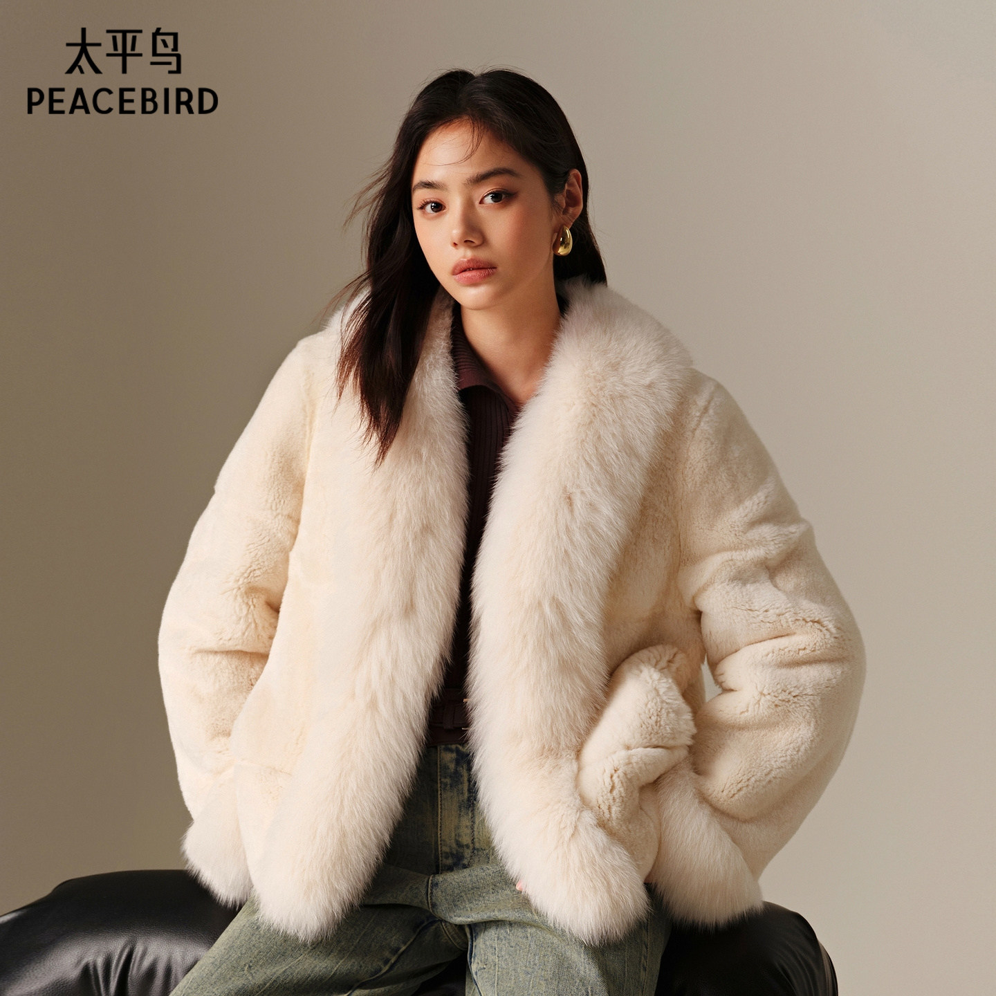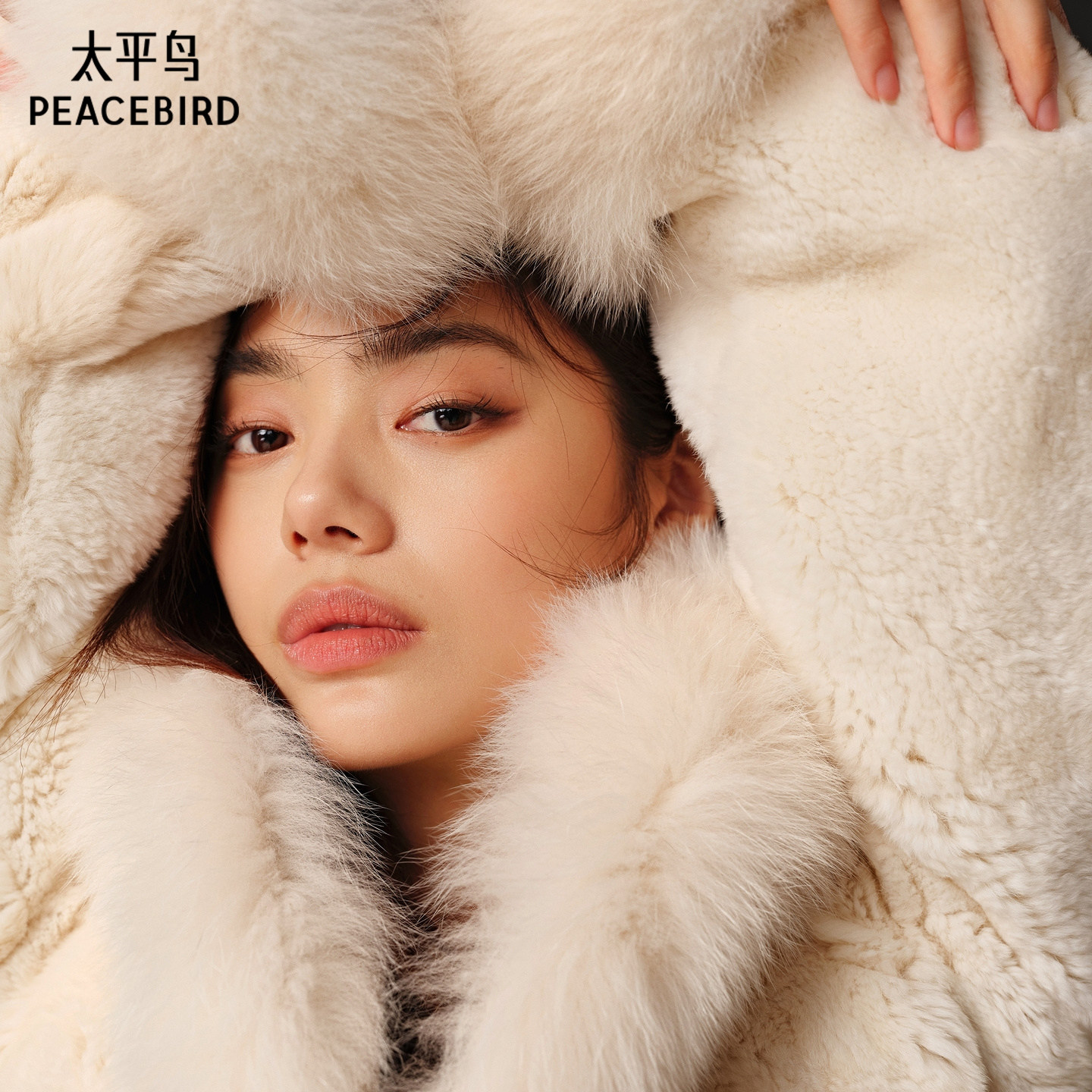【商场同款】太平鸟暖绒兔毛皮草外套女绒感狐狸大毛领A1ADF4704
