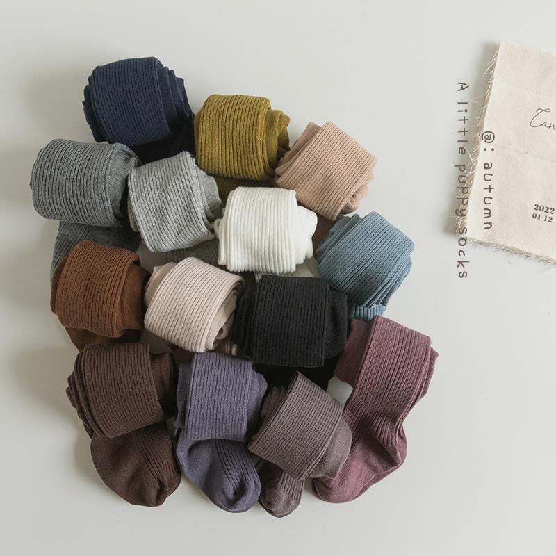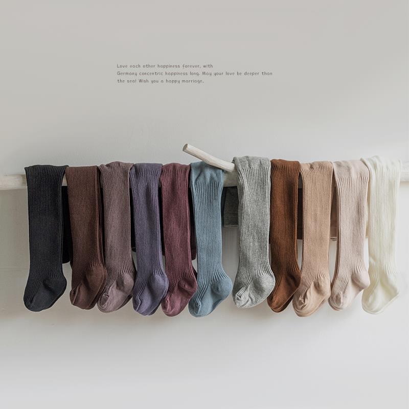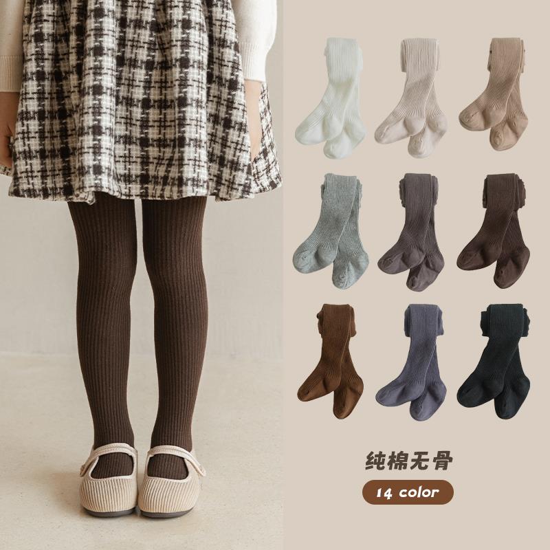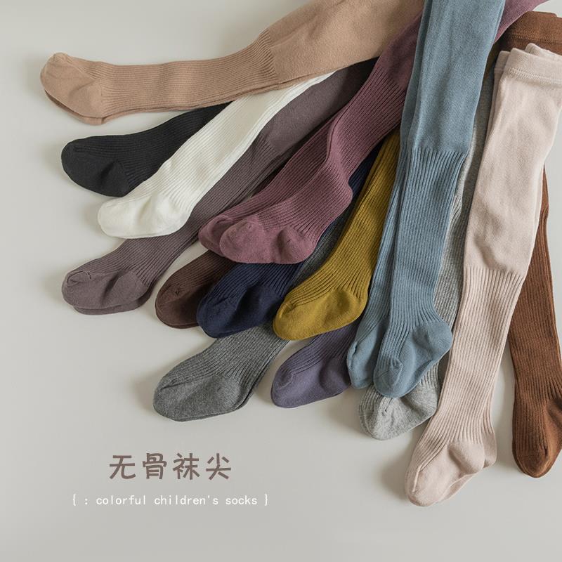 儿童连裤袜春秋纯棉无骨女孩宝宝打底袜纯色坑条女童连脚裤袜秋季