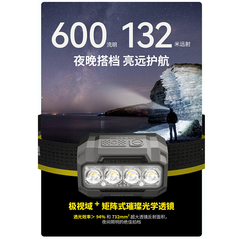 奈特科尔HA23 UHE多色温轻量AAA头灯露营徒步夜跑照明灯头戴户外