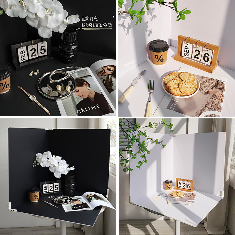 ins拍照背景板造景可移动场景布置高级感拍摄道具黑白色PVC背景墙