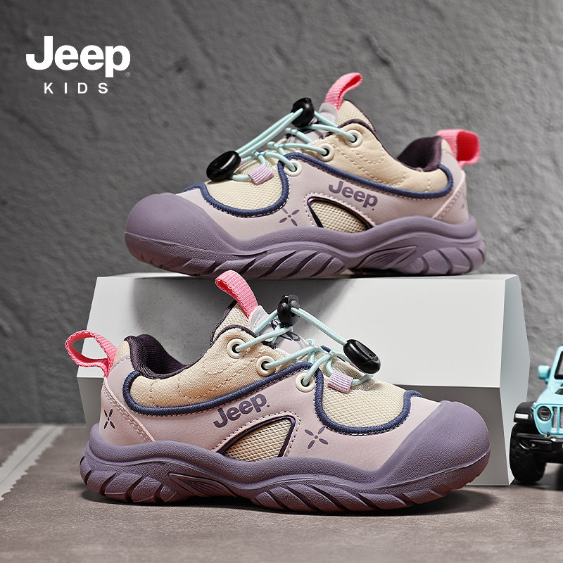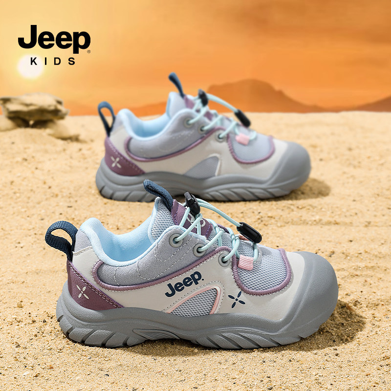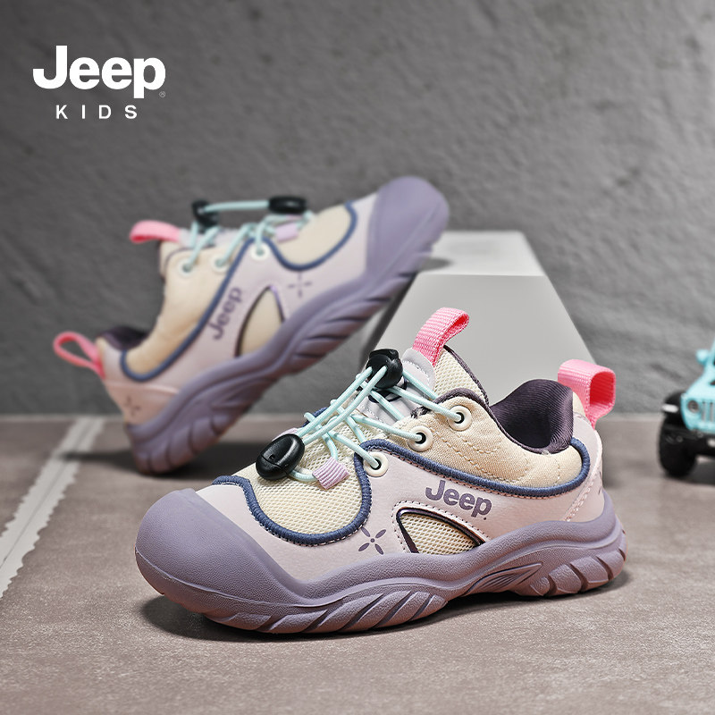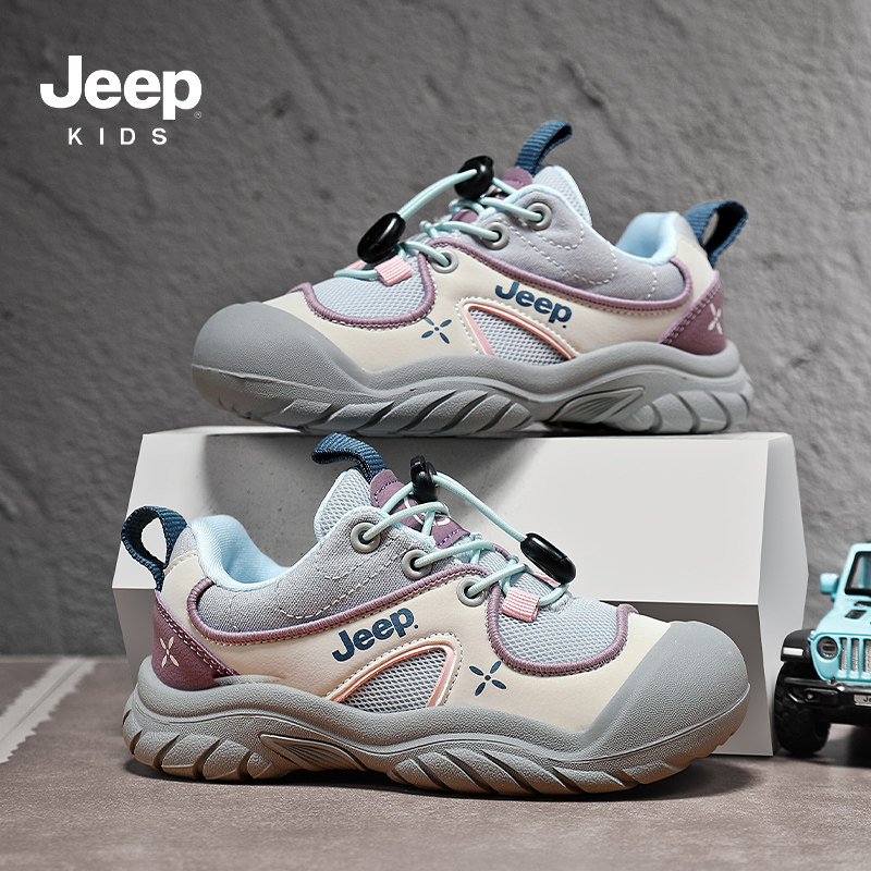 Jeep女童一脚蹬运动鞋2026春夏新款网面透气儿童户外鞋女孩休闲鞋