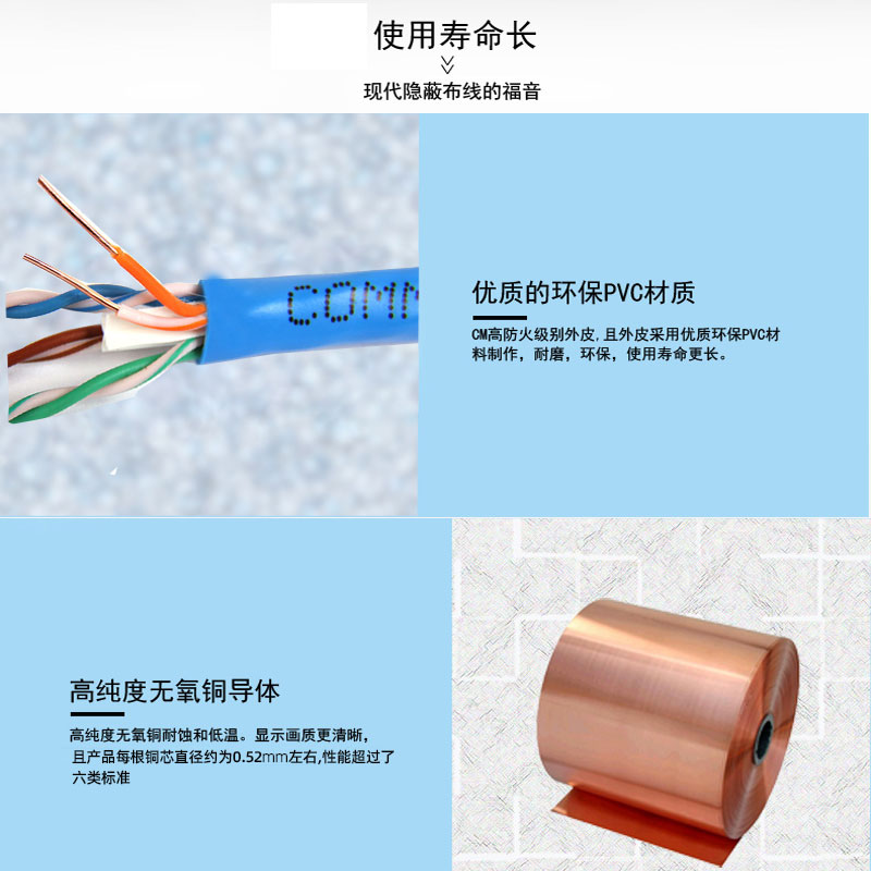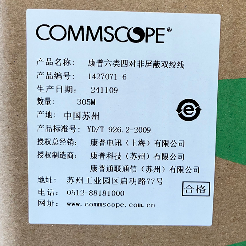 康普原装AMP安普六类网线1427071-6箱装305米千兆非屏蔽无氧纯铜双绞线UTP24AWG6类CM级网络线
