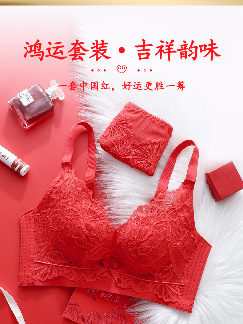 无钢圈收副乳大红色本命年聚拢上托文胸内衣女士套装2025新款秋冬