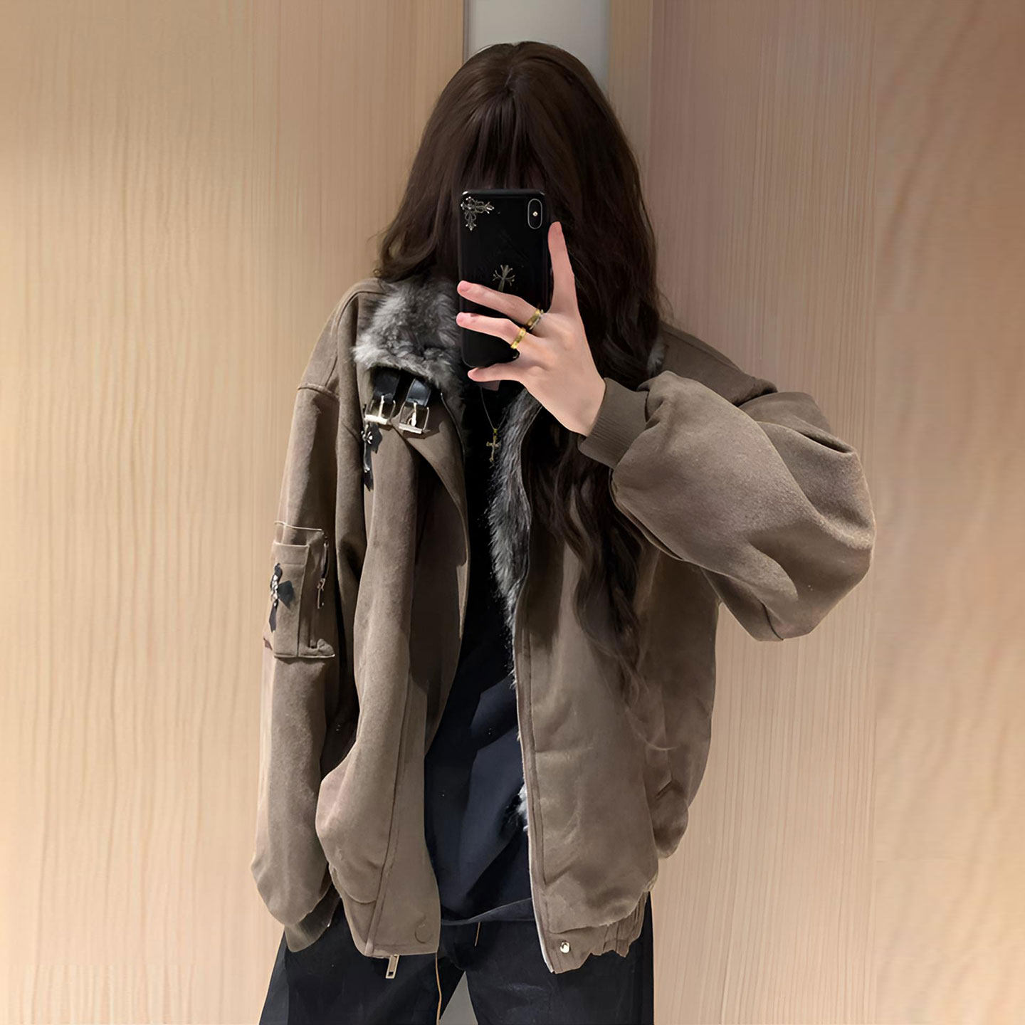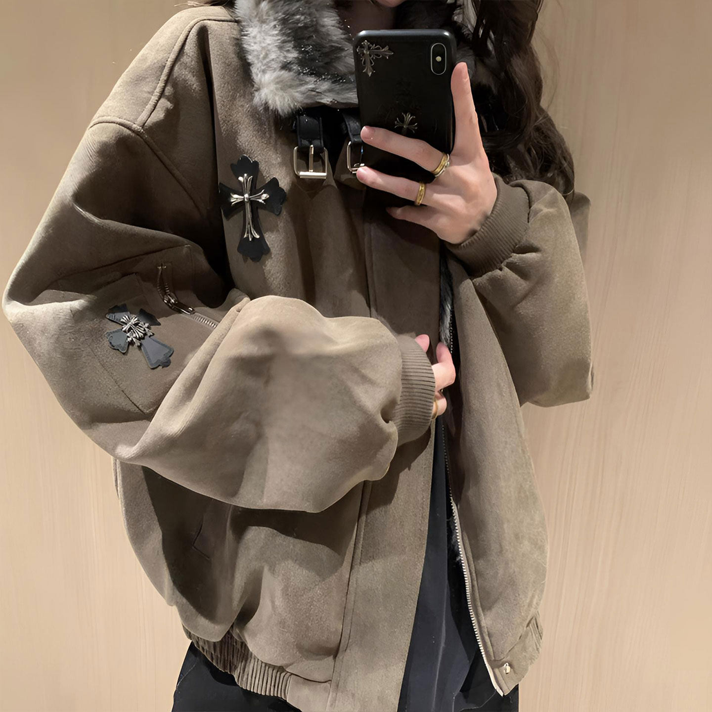 大码女装胖mm独特漂亮小棉袄女冬季复古高街显瘦座山雕保暖厚外套