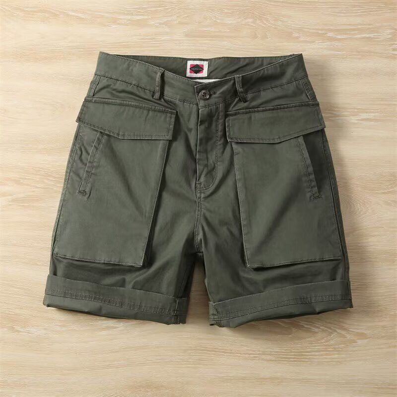 大口袋工装四分短裤男美式复古纯棉五分裤弹力百搭山系户外宽松潮