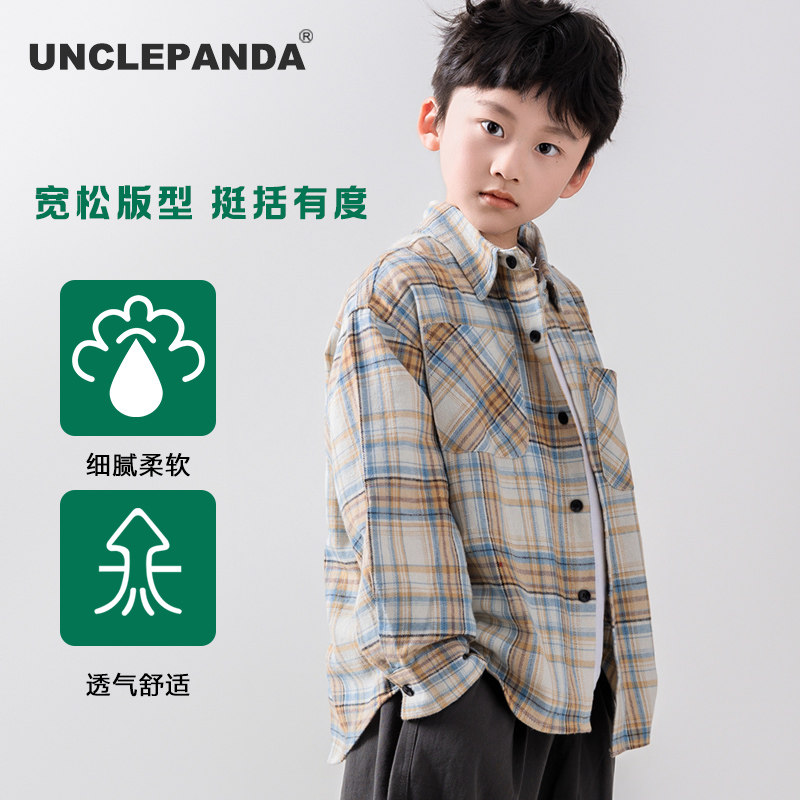 男童长袖衬衫春秋装2025新款儿童纯棉磨毛格子衬衣上衣中大童童装