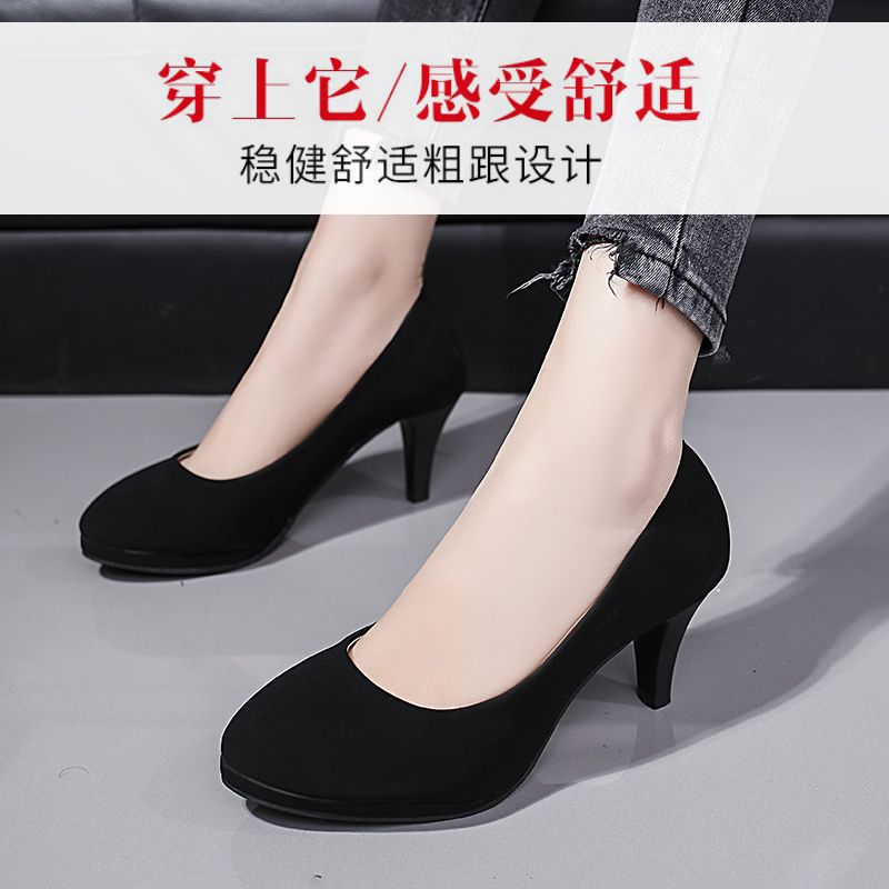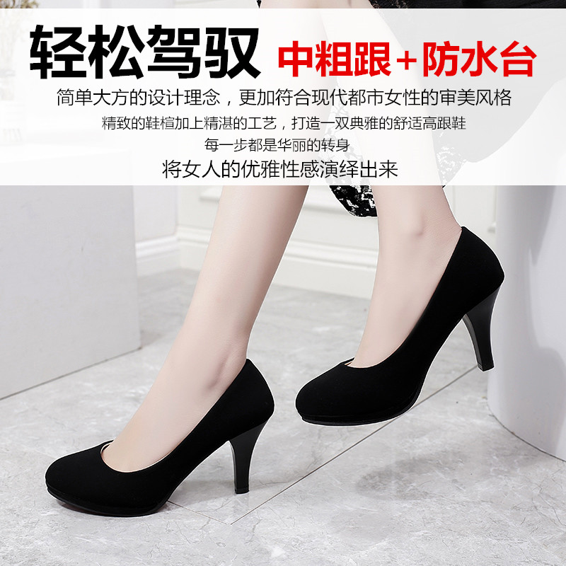舒适不累脚中跟黑色工作小皮鞋女细跟学生礼仪圆头面试职业高跟鞋