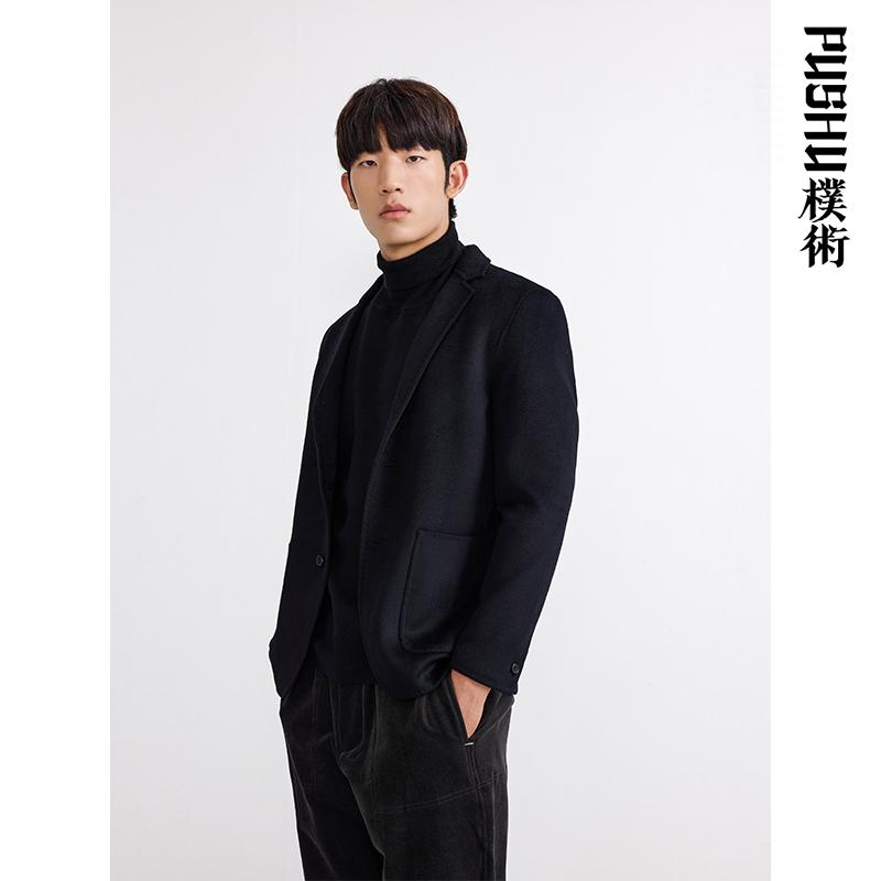 朴术男装冬季新款单排扣西装男外套羊毛黑色商务通勤正装毛呢大衣