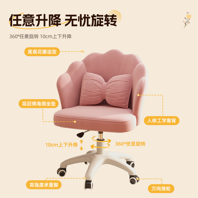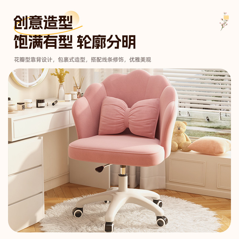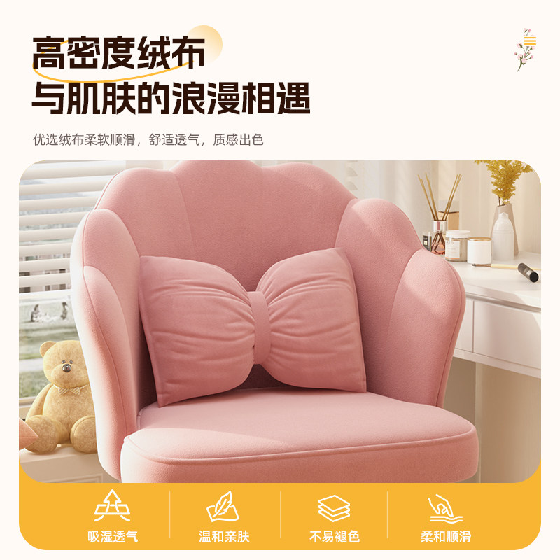化妆椅家用女生卧室梳妆台凳子靠背美甲椅子轻奢高级感花瓣公主椅