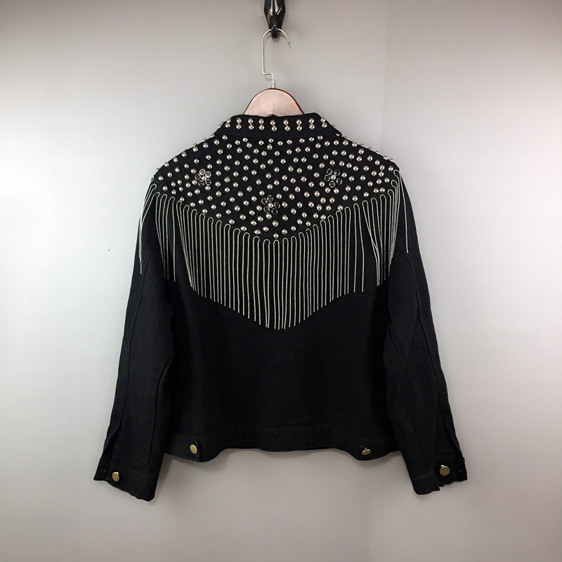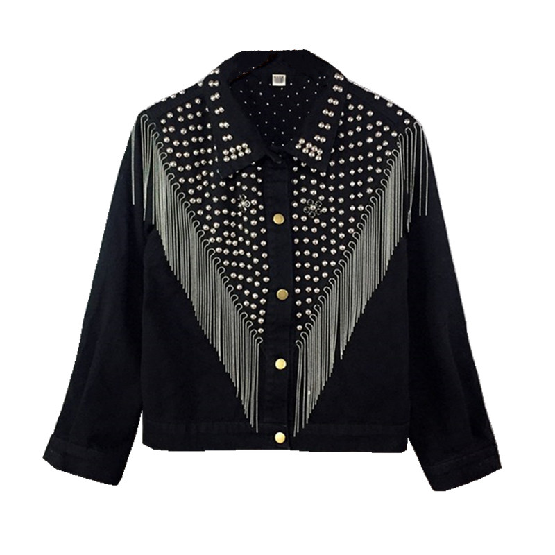 春秋新款牛仔外套男女短款重工钉珠流苏夹克韩版舞台演出上衣夹克