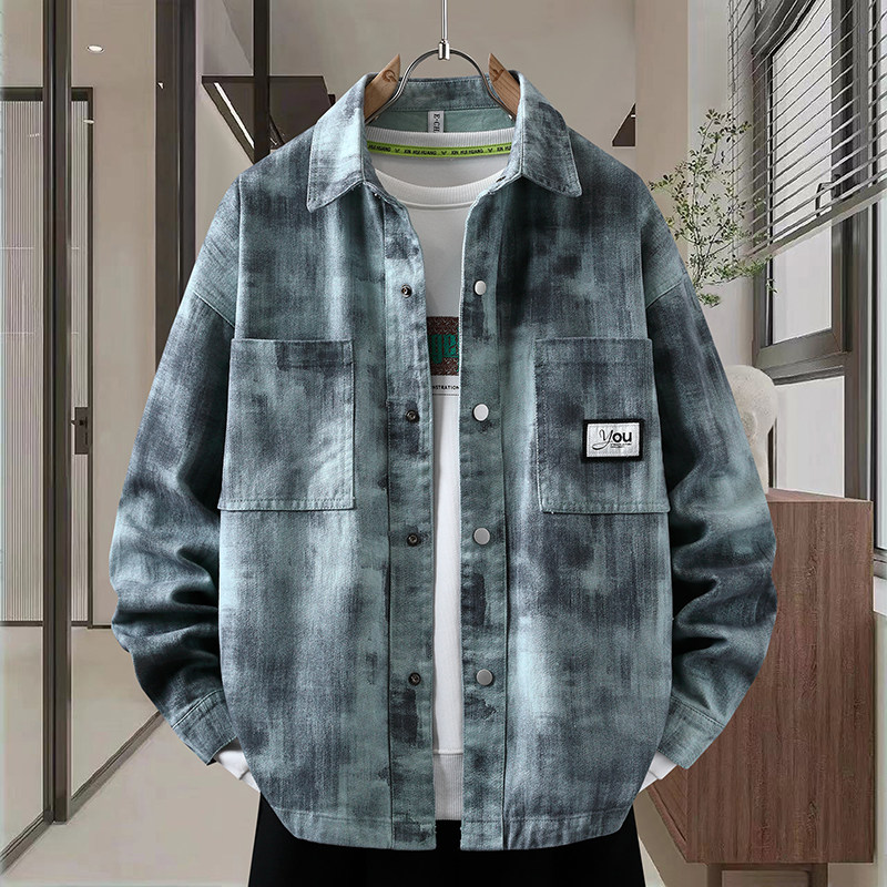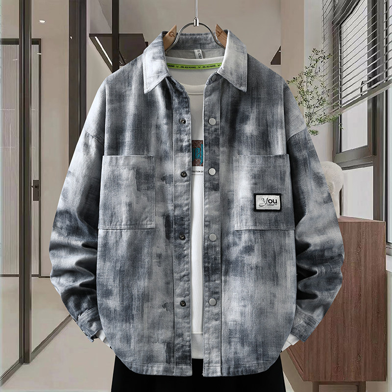 美式潮牌牛仔外套男士2026新款春秋季衬衫式痞帅翻领男装夹克上衣