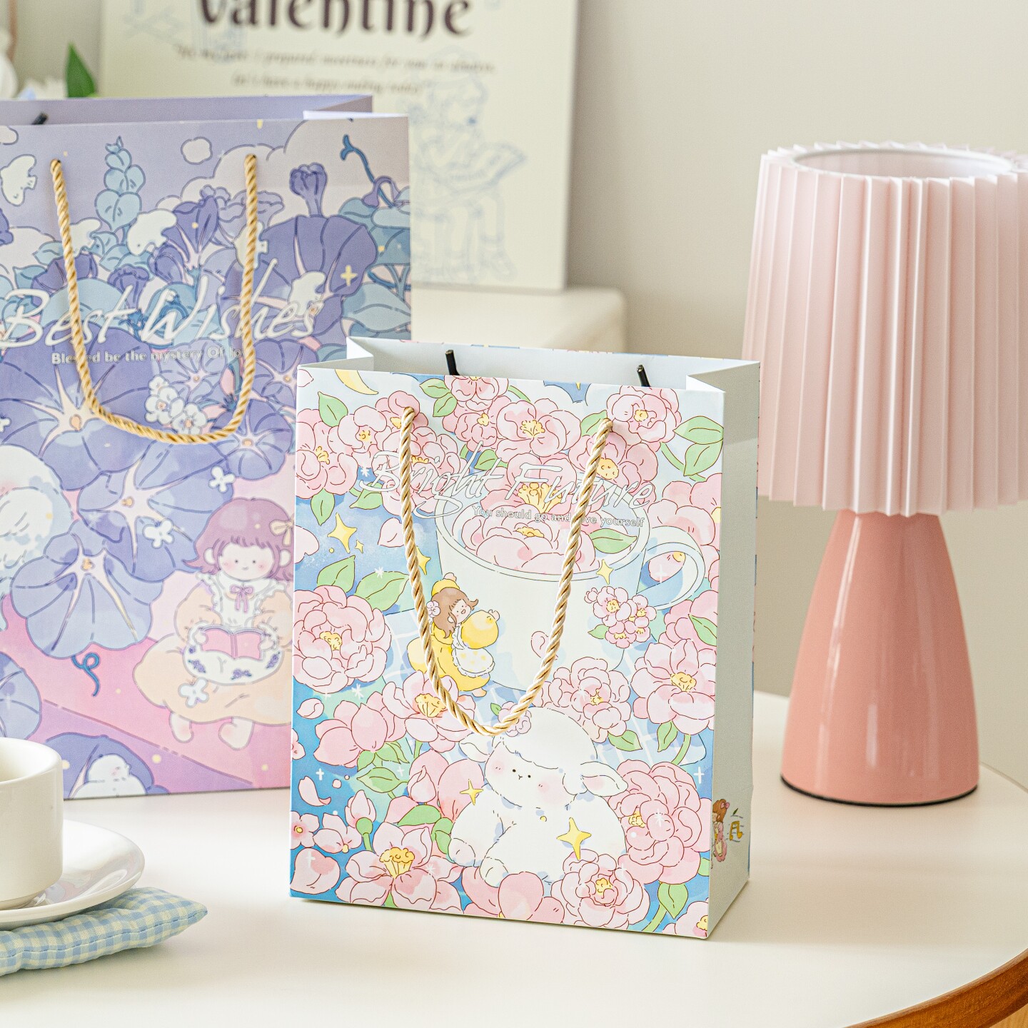 创意礼品袋可爱卡通花朵个性插画送礼生日礼物包装纸质手提袋
