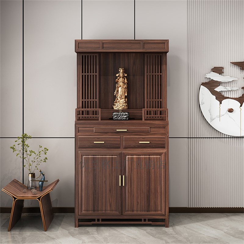 新中式全实木乌金木立柜佛龛供桌佛台家用办公室奉神龛带柜门定制