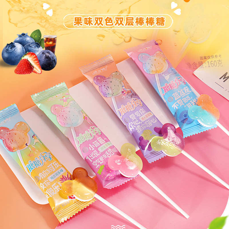 欢乐猴双色双层棒棒糖混合水果味硬糖可乐草莓味葡萄味蓝莓味分享