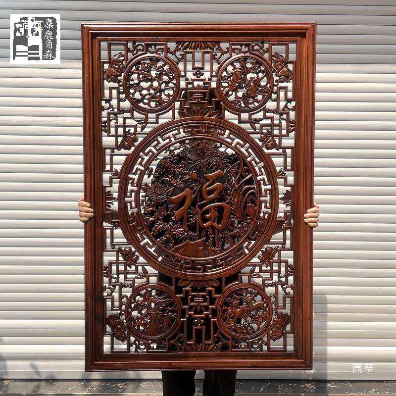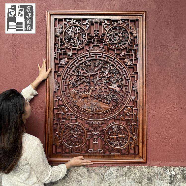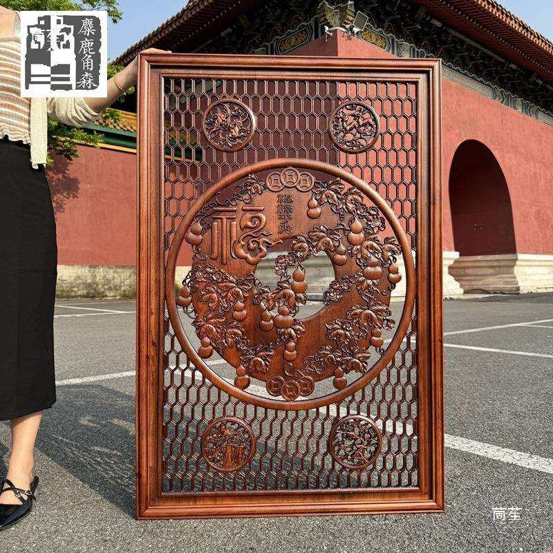 东阳木雕香樟木仿古中式镂空竖屏实木挂件壁挂玄关隔断客厅装饰画