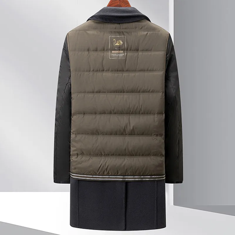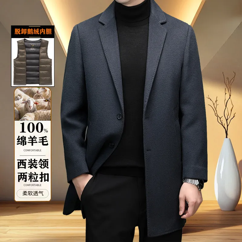 高档羊毛大衣男秋冬新品西装领脱卸鹅绒内胆风衣商务休闲外套男装
