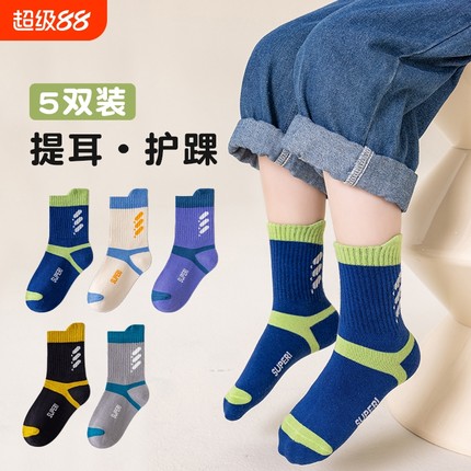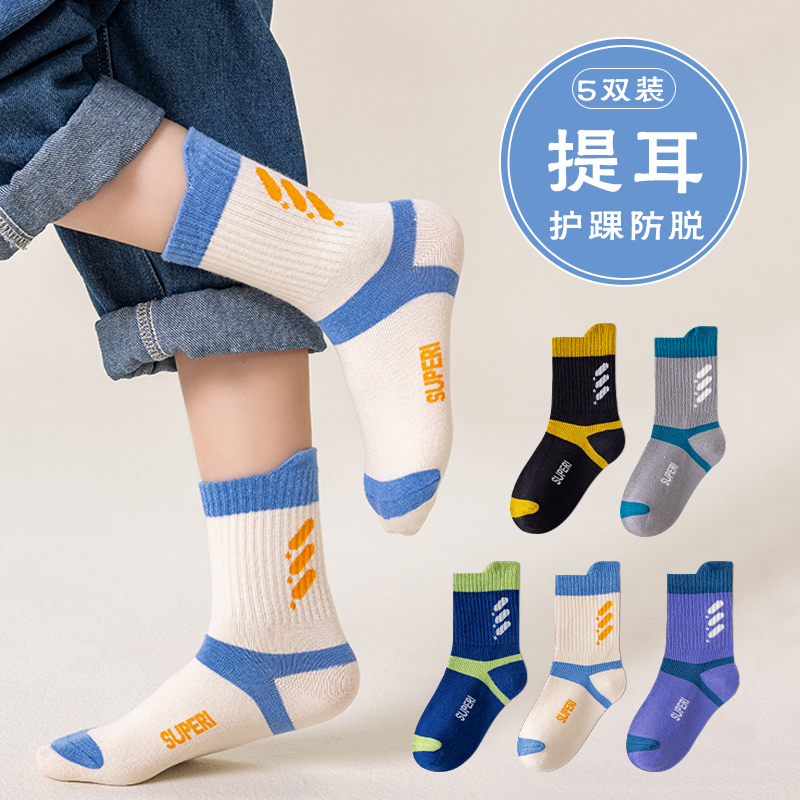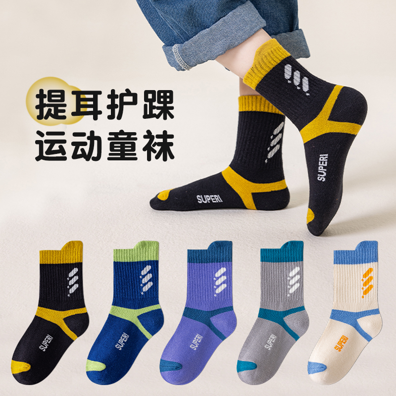男童袜子儿童春秋款纯棉防臭吸汗男孩青少年春季运动中筒袜中大童