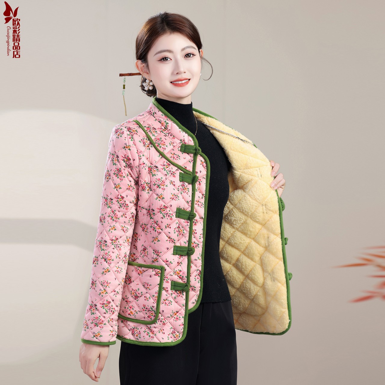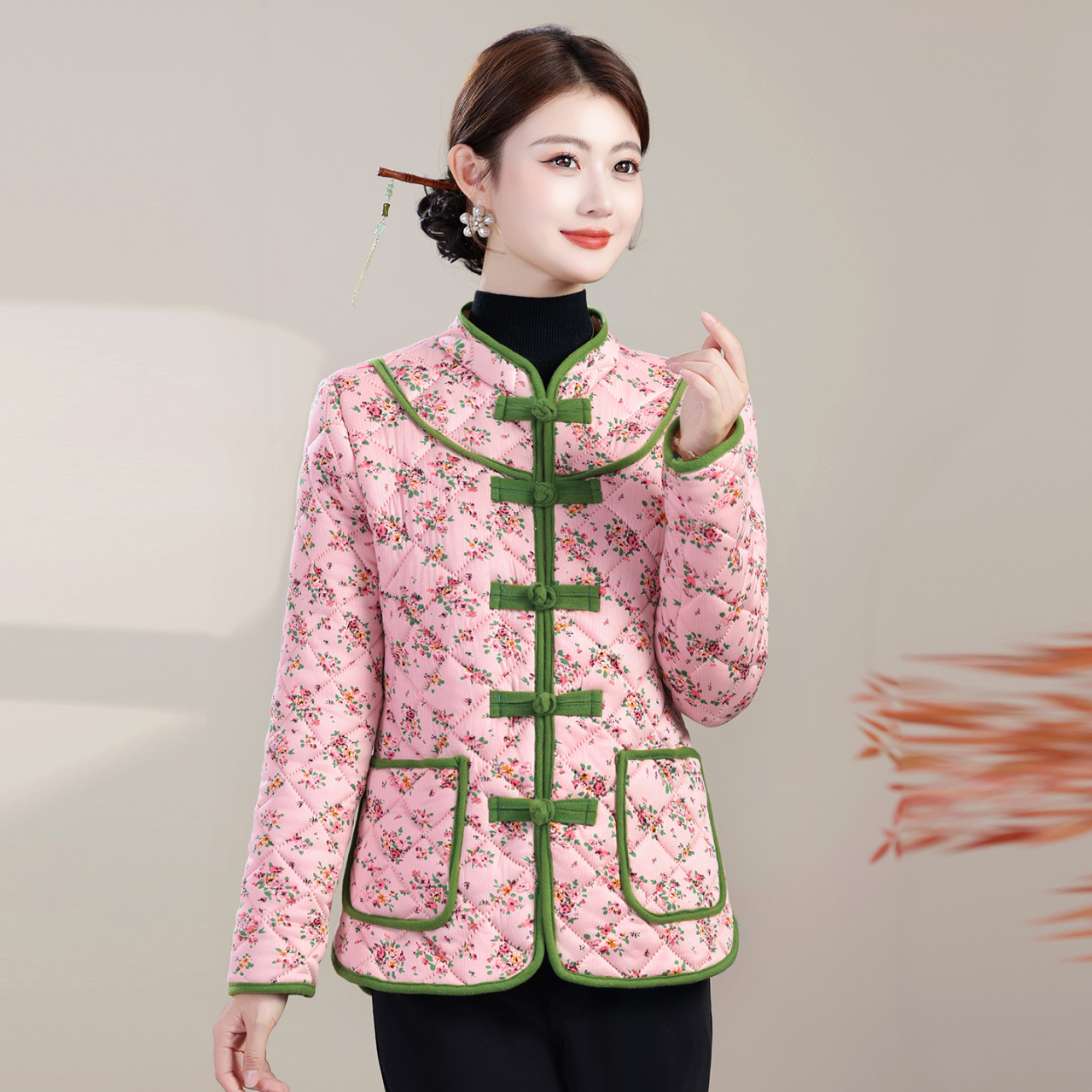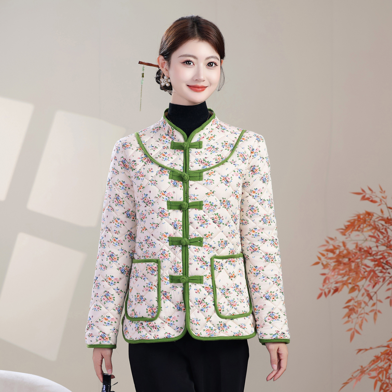 新款新中式碎花棉袄中老年女装妈妈装国风款冬装唐装盘扣棉衣外套