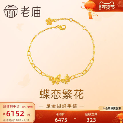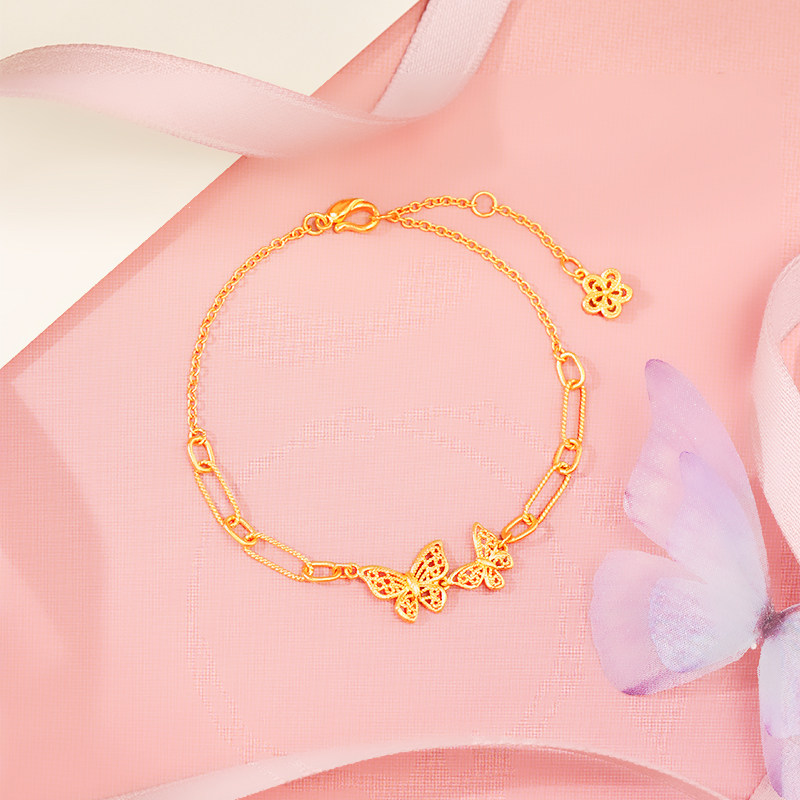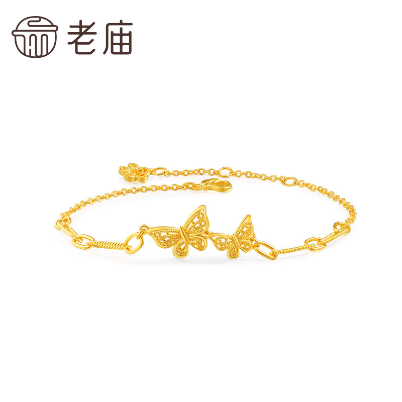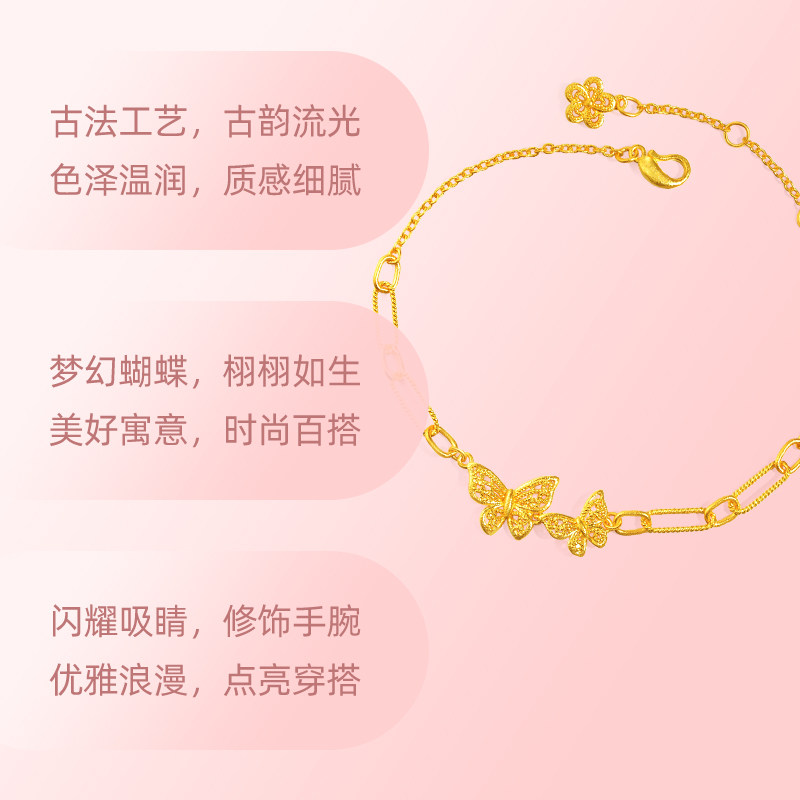 老庙黄金足金999蝴蝶手链古法工艺精巧华美悦己甄品清新时尚百搭