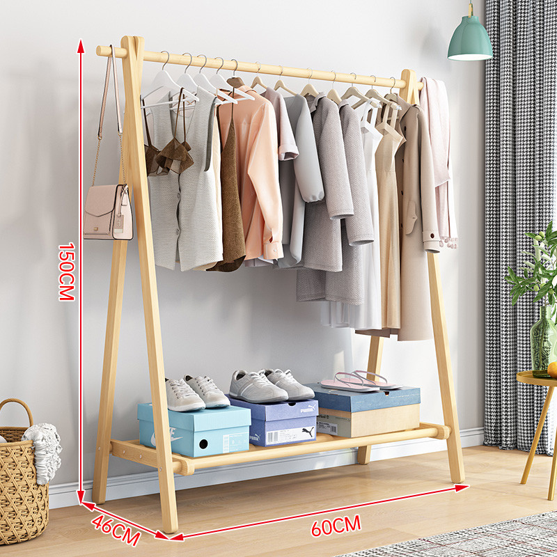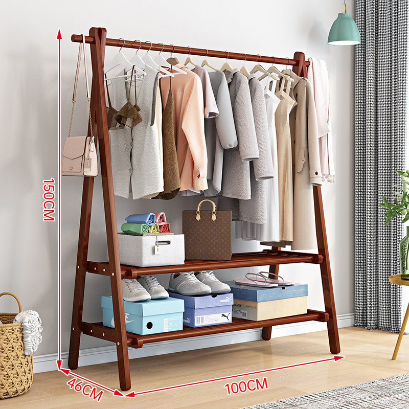 hf2x衣帽架实木衣架落地卧室简易收纳挂衣架简约现代家架子晾衣服