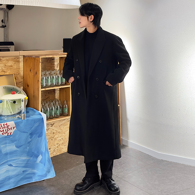 秋冬季新款毛呢大衣男中长款过膝无羊绒呢子风衣外套韩版宽松落肩