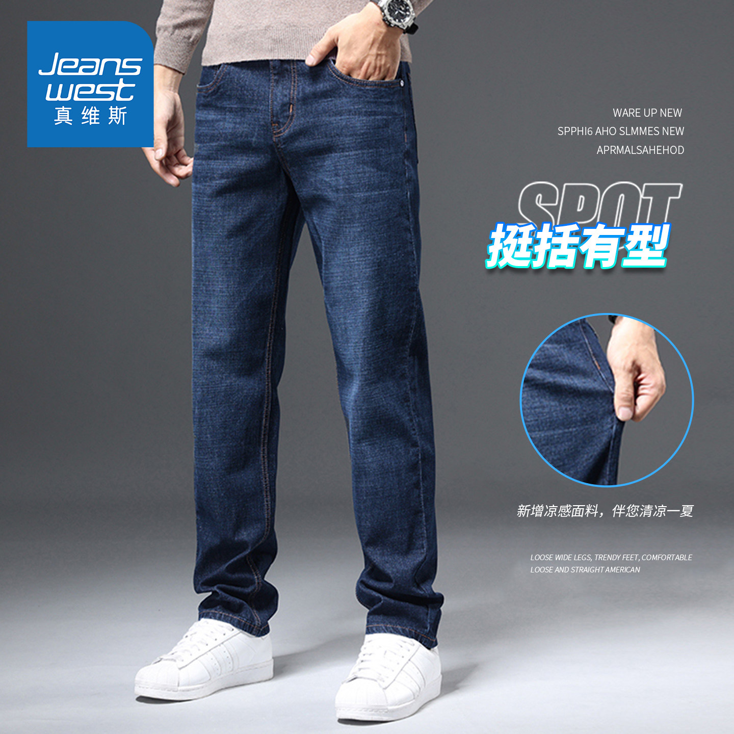 KZH真维斯商务牛仔裤男士秋冬新款宽松直筒裤中青年阔腿休闲长裤