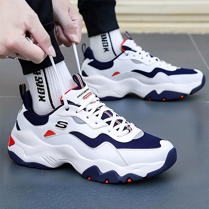 斯凯奇男鞋春季新款男士复古休闲鞋厚底显高运动鞋老爹鞋熊猫鞋潮