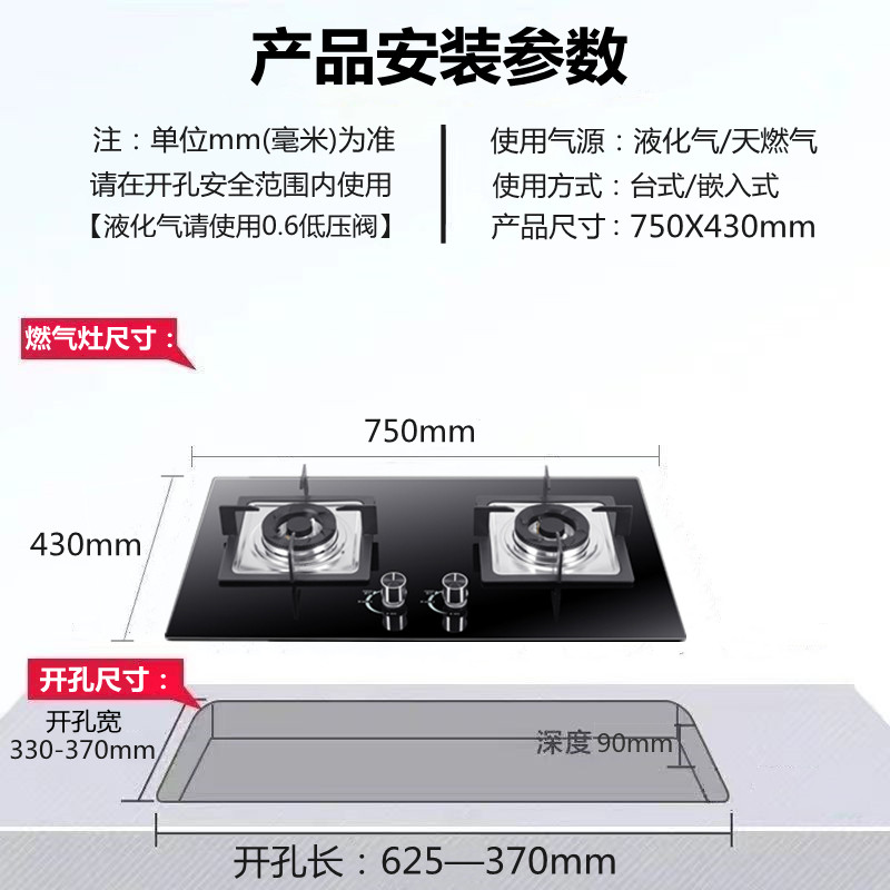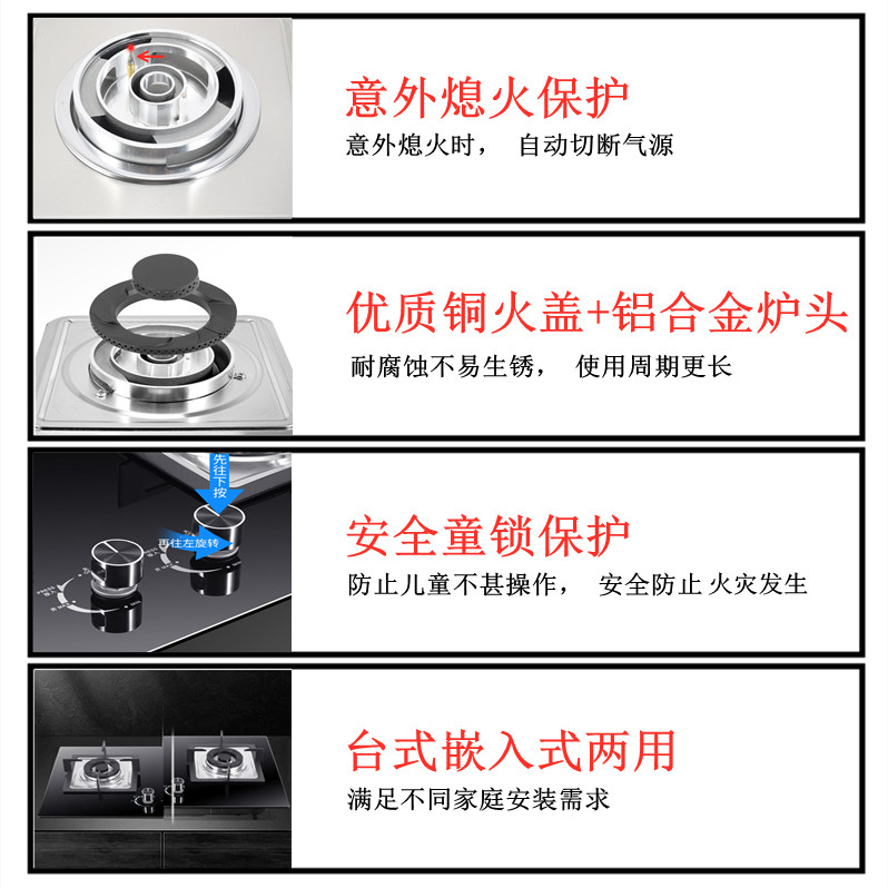 家用猛火燃气灶嵌入式双灶10T12T熄火保护天燃气台式嵌入式单炉