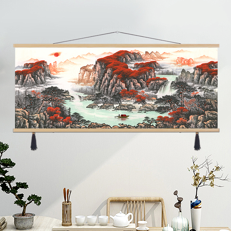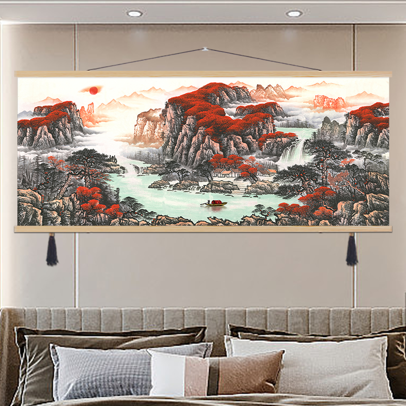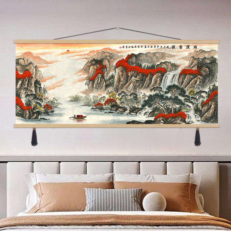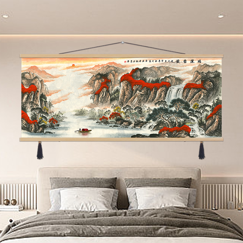 鸿运当头山水画客厅挂画靠山图沙发背景墙装饰画新中式办公室风景