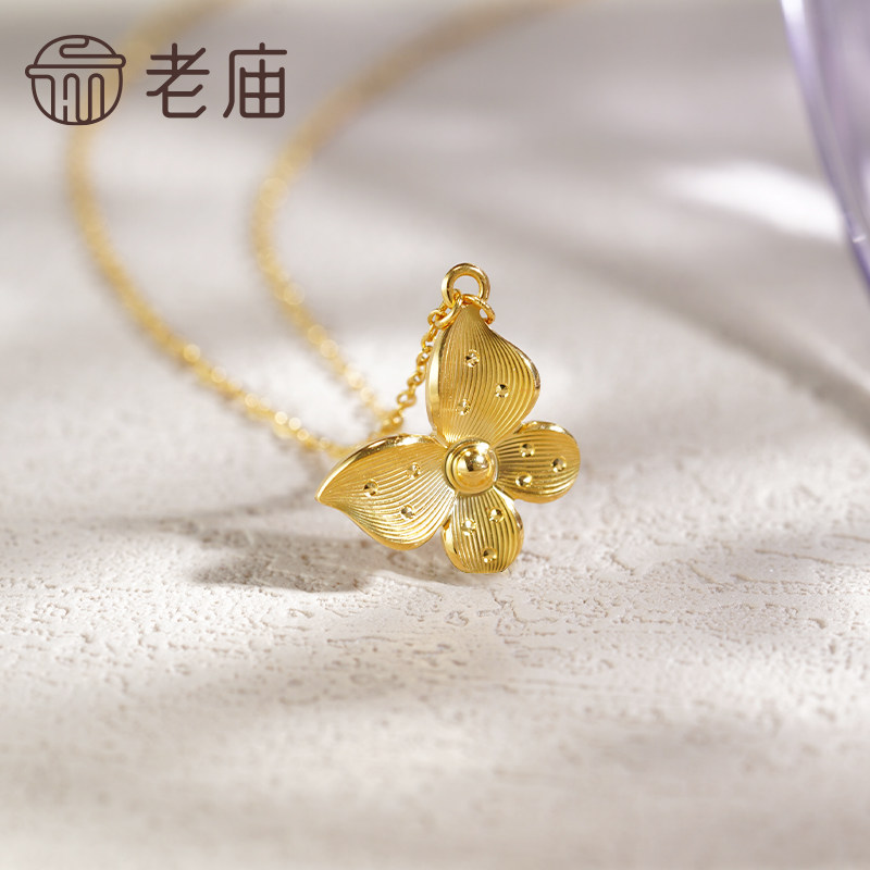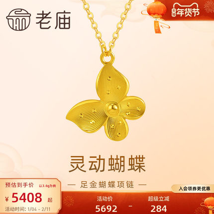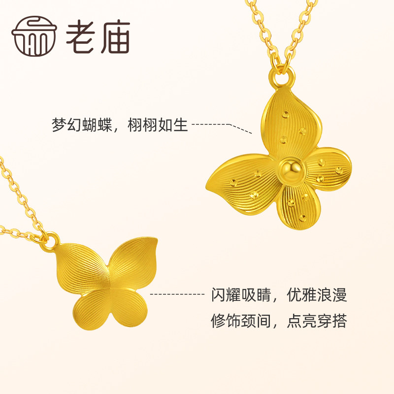 老庙黄金足金蝴蝶项链5G精致气质唯美蝴蝶翩翩起舞轻奢显白时尚